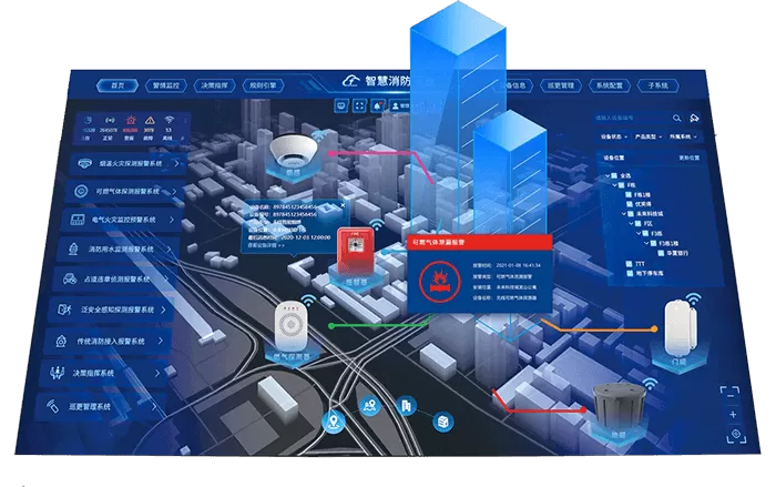 利博科技智慧消防解决方案,运用TurMass™ /LoRaWAN/Cat.1/NB-IoT物联网通讯技术,通过独立式感烟探测报警器、声光报警器、手动报警器、可燃气体探测报警器、电气火灾探测报警器、无线远程压力采集终端、无线液位远程采集终端、无线智能消防栓监测终端等为媒介,实现对于消防管理重点场所进行实施预防和管理的新型物联网解决方案。